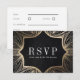 Art Nouveau charcoal and Gold Invitation Wedding RSVP, a beautiful gilded design, with intricate patterns bordering a striking text. Perfect for drama with a hint of gothic luxury. Charcoal, Dark emerald and grey backgrounds, with a choice of foil effect details. The suite pairs well with crisp white envelopes and matching belly bands, or for added luxury choose one of the complimentary envelopes for a maximum effect. See the whole matching suite here https://bit.ly/2GX1wCJ