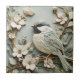 Art Nouveau Faux Relief Chickadee Bird Mint Floral Ceramic Tile