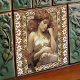 Elevate your interior decor with the timeless beauty of the Art Nouveau era, encapsulated in our exclusive ceramic tile. This unique piece features a portrait of an Edwardian model inspired by Alphonse Mucha's captivating lithographs from 1902. Known for his iconic contributions to the Art Nouveau movement, Mucha's illustration exudes ethereal charm and enchanting allure. Our artisans have framed this celestial beauty with meticulously designed Edelweiss flower ornaments, enhancing the motif's natural aesthetic. Edelweiss, a symbol of courage and purity, complements the muse, resulting in a harmonious blend of artistry and nature's elegance. This ceramic tile makes a perfect gift for art lovers or a sophisticated addition to your own space, embodying the enchanting narratives and captivating visuals of the Art Nouveau epoch.