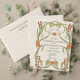 Romantic design with an Art Nouveau floral frame, in the colours of sunset orange with muted greens on the background of vintage paper. Elegant, sophisticated vintage fonts complete the timeless and classy look.