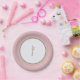Art Nouveau themed floral pink and green wedding reception plate with vintage stlye pink flower in the middle and pink border