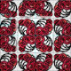 Rose vines in red and black with white background in Art Nouveau style.