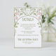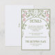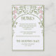 Art Nouveau floral encolosure card with reception details in green inside floral frame made of pink floral motifs set on white background with blue undertone