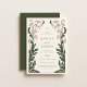 Art Nouveau Floral Frame Wedding Invitation. Moss green and blush colour palette with soft beige background.