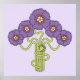 Colors: grayish violet, light apple green, light brilliant vermilion and light orange on a light violetish gray (grey) background.
