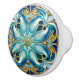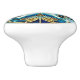 Art Nouveau Gold Aqua Blue Geometric Ceramic Knob