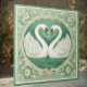 Art Nouveau Green Swan Couple Lake Floral Motifs Ceramic Tile
