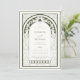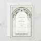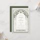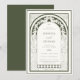 Art Nouveau Greenery Arch Frame Wedding Invitation. Moss green colour palette with soft beige background.