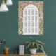 Guide your guests to their seats with an air of historical elegance using this Art Nouveau-inspired seating chart. The design features a graceful, ornamental arch with intricate details in hues of gold, sage green, and champagne, framing the columns of guest names. The background is soft ivory, subtly contrasting the golden accents and delicate botanical patterns. At the bottom, the honoured couple's names are elegantly presented in a classic font, complemented by the date of the special occasion. This seating chart combines functionality with the sophisticated charm of the early 1900s, perfect for a vintage-themed wedding.
