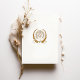 Unveil your upcoming nuptials with this stunningly crafted Islamic wedding invitation, steeped in the elegance of the Art Nouveau period. The front of the invitation card is adorned with a lavish display of gold and cream florals, delicately intertwined with rich, caramel-accented leaves against an ivory background. At the heart lies the sacred Bismillah in beautiful Arabic calligraphy, symbolising blessings for the day. The back side is equally elegant, featuring a minimalist golden emblem with the couple's initials, set within a stylised tree and wreath. This invitation is a harmonious blend of cultural reverence and aesthetic grace, perfect for the couple seeking a sophisticated announcement of their love and commitment.