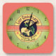 Art nouveau Lily chocolate company clock advertisement. In colors of green, pink, gold and black and embellished with an illustration of white lilies.