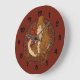 This clock is printed with an image of a woman with long red hair from vintage art nouveau posters.