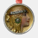 Round premium ornament with a gold Art Nouveau image of a young woman wearing a diamond-studded headdress. See the entire Gemstones & Medallions Ornament collection in the HOME section.