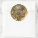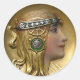 Round sticker with an image of a gold Art Nouveau medallion of a young woman wearing a diamond-studded headdress. See matching wrapping paper. See the entire Gemstones & Medallions Sticker collection in the CARDS, POSTCARDS & STICKERS section.