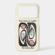 The curvy lines and abstract shapes that were the signature of Art Nouveau continued to have a heavy influence in the 1950's -1970's, and are brought together in this cool 21st Century iPhone case design that lies atop an off-white tone-on-tone polka dot background. 2 custom text fields for your name or caption.
