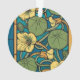 The striking contrast between the golden yellow petals, lush green foliage, and the vibrant teal and cerulean blue background creates a stained-glass effect that is both decorative and sophisticated. Perfect for maximalist interiors, Art Nouveau collectors, or anyone looking to add a touch of early 20th-century French flair to their space. This timeless botanical illustration brings a sense of artisanal craftsmanship and natural harmony to any product.
