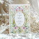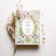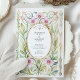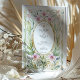 Celebrate your special day with the exquisite artistry of this Art Nouveau-inspired wedding invitation. The design features a lush, hand-painted watercolor border of stylised pink orchids, intertwined with graceful, swirling foliage in a sophisticated palette of sage green, muted teal, and deep purple. The entire composition is set against a soft, pale green background, enhancing its vintage and artistic feel. At its heart, a beautiful hand-painted gold oval frame, inlaid with jewel-toned accents, elegantly encloses your wedding details. This invitation is a perfect choice for an artistic couple, a sophisticated garden wedding, or a vintage-themed celebration, promising a day of unique elegance.