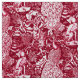 Art nouveau pattern based on a vintage William Morris tapestry inspired fabric depicting a forest scene with peacocks, hares and foxes, digitally rendered in deep burgundy wine / maroon and creamy white