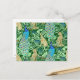 Art Nouveau Peacock Print, Cobalt Blue & Green Postcard