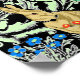 Print in an Art nouveau pattern based on a vintage William Morris tapestry depicting a forest scene with peacocks, hares and foxes, digitally rendered in turquoise, greens, browns and a black background for the look of a traditional tapestry