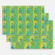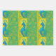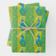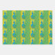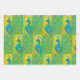 This art nouveau style wrapping paper sheets feature vibrant turquoise and blue peacocks on a background of yellow gold and orange damask. Image AI generated.