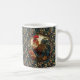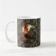 Art Nouveau style rooster on an ivy and yellow leaf pattern background.
