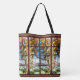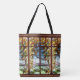 Gorgeous Art Nouveau Vintage Stained Glass fine art of Waterlily Flowers, Lilypads and Loofa Vines on a trellis, is on this great All Over Print Tote Bag. Image is public domain due to expired copyright.