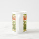 ART NOUVEAU STYLIZED GREEN RED POPPY BONE CHINA MUG