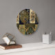 A collage of artistic, art nouveau prints by Christopher dresser. A mixture of arts and craft style , Victorian and art nouveau textile prints. Bold and elegant. In colours of black, gold and green.