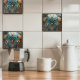 Beautiful art deco tile with a geometric, pattern in black, gold and turquoise.