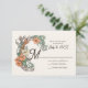 Elegant art nouveau floral wedding RSVP cards in peaches, greens, and burgundy.
