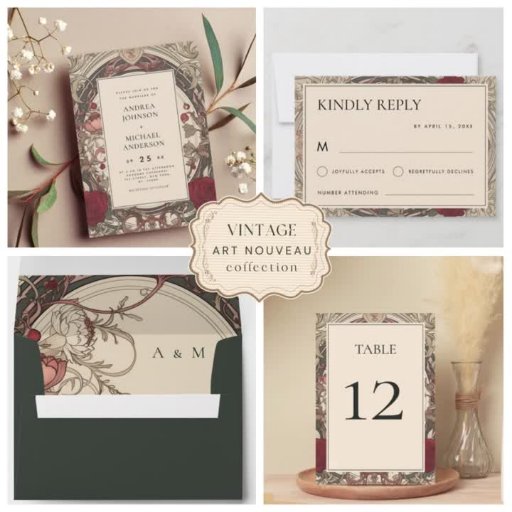Vintage Art Nouveau Floral Burgundy Wedding SuiteDesigned by Anastasiya S.