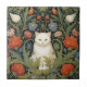 Art nouveau white cat in the garden ceramic tile