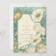 A striking Art Nouveau wedding design featuring bold white poppies with flowing teal vines and golden accents. The intricate botanical frame adds a vintage, artistic touch, ideal for couples looking for a romantic yet dramatic floral wedding theme.