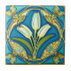 Art Nouveau style symmetric white lily on a green a blue aqua gold background. For an elegant artistic bathroom wall tile border or kitchen tile border. The artwork is an AI creation.