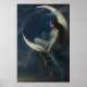 Art nouveau style image of a woman on a crescent moon sprinkling stardust.