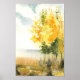 Beautiful and bright hand drawn watercolor poster with autumn landscape and river. This poster will be great accent in Your interior,