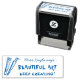 Positive encouraging message self inking stamp for art teachers. Fun stamp featuring painting brushes illustrations and three lines of text you can personalize. The sample lets the teacher praise the student's art and encourage them to keep creating. Change the name and the message to fit your own style of communication and praise.