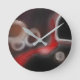 Arterial Motif: Abstract Black, White & Red Round Clock