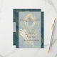 Celebrate your wedding in an artful and unique peacock theme with this beautiful wedding invitation and matching accessory set. Features stylish, rich and luxurious artwork of a peacock feather detail in colours of cobalt blue, teal and celadon light green. Background in dark aqua blue with an antique wash and swirly design. © 2010 www.CustomInvitesOnline.com