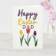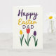 Designed with layered lettering and simple botanical accents, this card opens on a soft ivory background that lets the colors stand out. Near the top, a large greeting sits in three parts, leading the eye from left to right like a gentle conversation between close friends. The first words are written in deep violet, followed by rounded golden-yellow lettering that feels sunny and welcoming 🌷. The final line lands in sturdy uppercase letters in violet again, giving the message extra emphasis while keeping the layout balanced. Below the text, the open space feels calm and airy, with green stems rising as if they’re reaching toward the words like a quiet gesture of affection. Three stylized flowers line the lower area, their tapered petals suggesting a tender, thoughtful mood rather than anything loud 🐰. One blossom is bright yellow, one is rich red, and one is deep purple, each on a slim dark-green stem with a few simple leaves. The trio sits along the bottom edge, evenly spaced, with the yellow bloom on one side, the red near the middle, and the purple on the other side.
