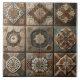 A captivating display of nine intricately designed tiles, each featuring unique geometric patterns and textures. Earthy tones blend harmoniously, revealing the skilful craftsmanship that brings each piece to life.