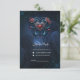 Artfully designed gothic heart comprised of intricate patterns and elegant embellishments. The heart exudes a romantic darkness, symbolising the couple's eternal love. Two stylised crows are incorporated into the background, almost as if they are blending into the deep blue hue. Their silhouettes are elegant and mysterious, adding an extra dimension to the design. The crows could be slightly tilted, as if they are guarding the couple or witnessing their love.