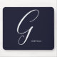 Artfully Monogrammed Script Letter G Navy Blue Mouse Pad