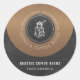 Coffee house exclusive coffee packaging label round sticker on dark grey charcoal and copper brown background featuring a vintage coffee roasting machine. ++++++++++ Easy to personalise with 4 lines of text. +++++++++++ Suitable for artisan coffee houses, small coffee business, cafe and sweets home made manufacturers.