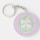 Artist designed sheer pink bow and plaid key ring