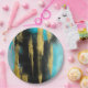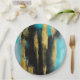 Artistic Abstract Art in Turquoise, Gold and Black Paper Plate