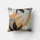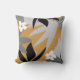 Modern throw pillow features an artistic abstract botanical design in a grey and mustard yellow colour palette with black and white accents. This abstract composition is built in Memphis style on combinations of organic leaves and flowers, which are overlapped and interlaced to form a stylish organic tropical botanical pattern. The grey design elements with black and white accents compliment the mustard yellow coloured background.