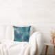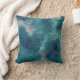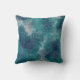 This throw pillow features an artistic abstract grunge design in navy blue, teal, turquoise and grey for a rustic look.