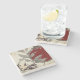 The coasters are gorgeous, a quality feel and heavy weight. They look like a precious archeological find. A rustic stone juxtaposed with a modern floral black and white print. I like the way the print goes slightly imperfect on the cut stone edges giving them a kind-of natural beauty.